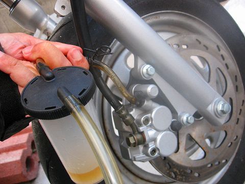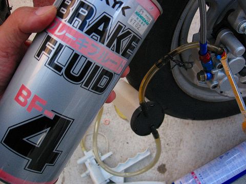 キャリパーのブリードバルブにビニールチューブを繋げ、スコスコ吸い出します。