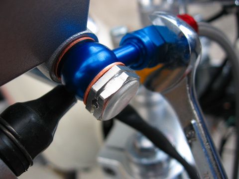 家に転がってたシルバーのバンジョーボルト使って、締め込みました。