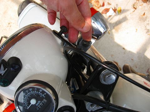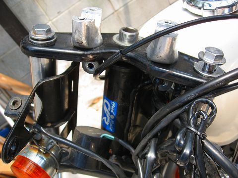 トップブリッジボルトワッシャを外します。(フォークの上のゆるんでるボルトです。)