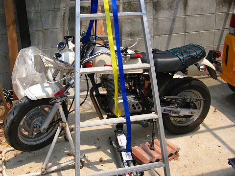 バイク用のフロント スタンドも持ち上げる時だけ、安定用に使用しました。