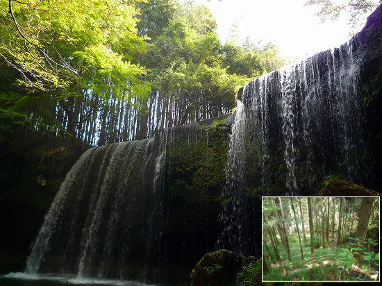 ツーリングがてら小国から387号線を中津江村方面に行った所にある、鍋ヶ滝です。