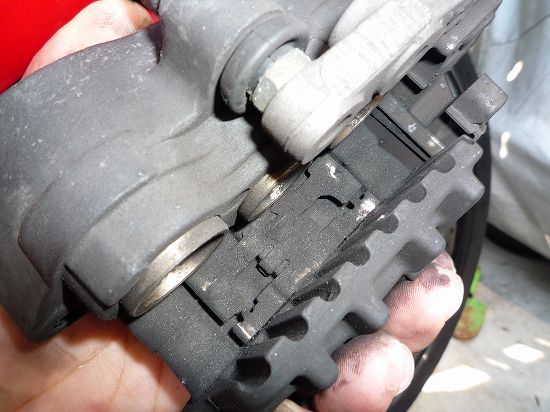 キャリパのピストンの動きが良くなるようにピストンを中性洗剤等で綺麗に洗ったげます。