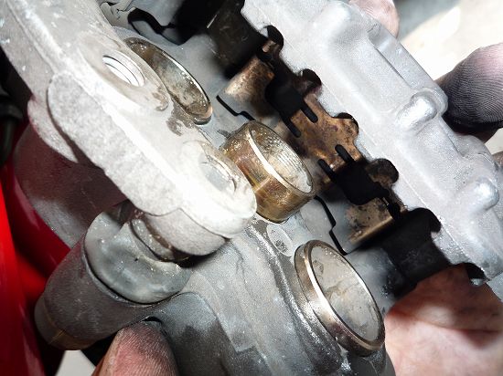 ご覧のように、そんな惨い状態ではないものの、そこそこブレーキのピストンも汚れています。