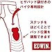 購入時の選択理由はデザイン的に赤と白のステッチが惹かれたこと、CORDURAを使用しEDWINの通常の布地に比べ20倍の摩擦強度のある生地が使われていること。