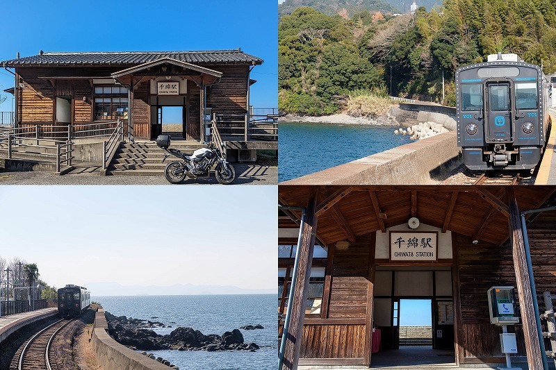 長崎県東彼杵にある千綿駅までバイクのツーリングでやってきました。とても海が近い駅です。