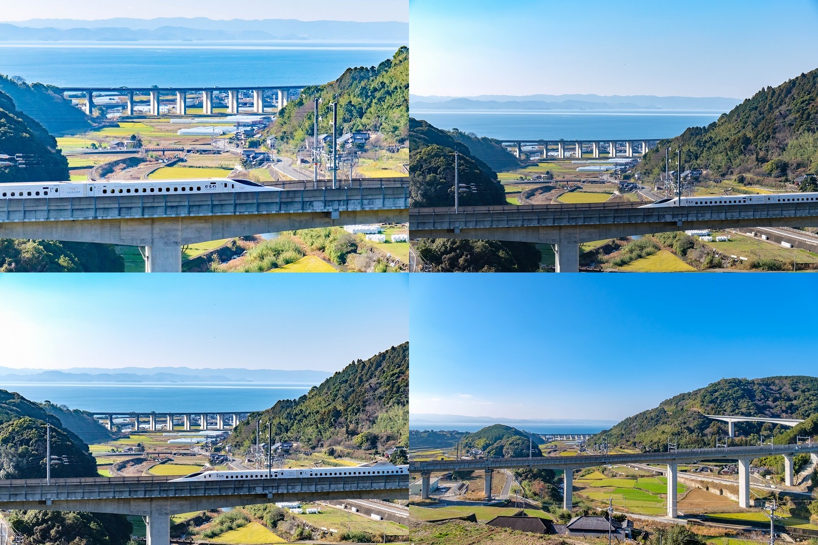 新幹線と大村湾の青い海 緑道豊穣の碑 展望所(長崎県東彼杵)